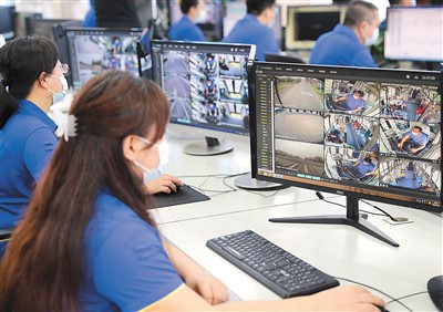 山東青島西海岸新區(qū)依托移動(dòng)互聯(lián)網(wǎng)、云計(jì)算、大數(shù)據(jù)、車(chē)聯(lián)網(wǎng)等先進(jìn)技術(shù)和理念打造“智慧公交”,助力市民綠色出行。圖為青島真情巴士集團(tuán)智慧公交指揮中心調(diào)度員在實(shí)時(shí)查看車(chē)輛運(yùn)行情況。張進(jìn)剛攝(人民視覺(jué))