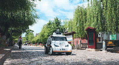5G無(wú)人巡邏車(chē)在云南麗江古城進(jìn)行巡邏作業(yè)。