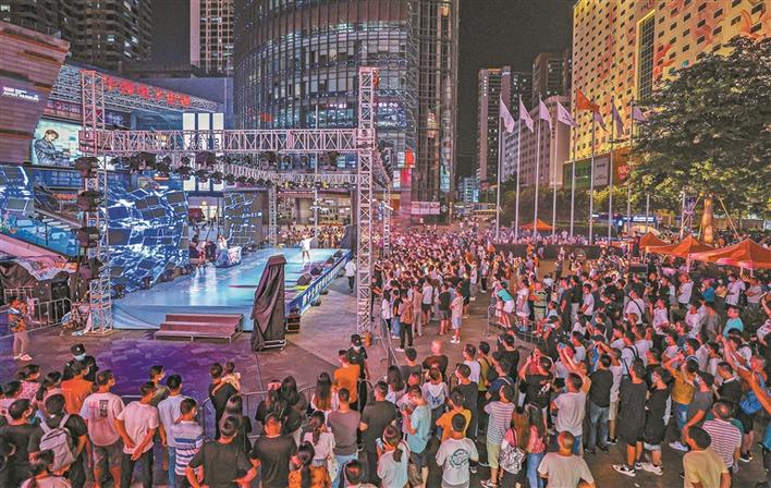 物質(zhì)文化、制度文化和精神文化三個(gè)層次互動(dòng)共生,勾勒出一個(gè)豐富、飽滿、鮮活的深圳城市文化形象。圖為第二屆華強(qiáng)北潮流電音節(jié)。深圳特區(qū)報(bào)記者 何龍 攝