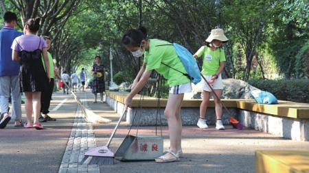 第2天上午,“職業(yè)體驗官”們兵分兩路,跟隨綜合執(zhí)法隊員和環(huán)衛(wèi)工人一起走上街頭,參與市容市貌秩序維護工作。擺放共享單車、清除違章廣告、擦拭垃圾箱、清掃路面……大家興奮地在大街小巷“工作”起來。“兩天的學(xué)習(xí)收獲到很多環(huán)保知識,環(huán)衛(wèi)工人和城管叔叔真辛苦?!?1歲的盧沭屹分享了自己的感受。
