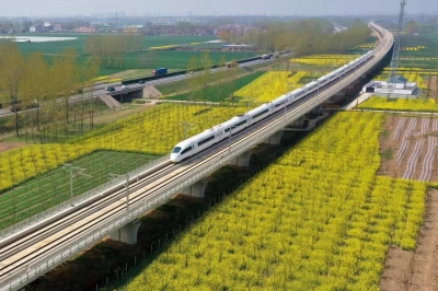 飛馳而過的鄭阜高鐵。任新軍 攝