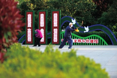 “推窗見綠,出門進(jìn)園”,許多口袋公園成為市民晨練休閑好去處。