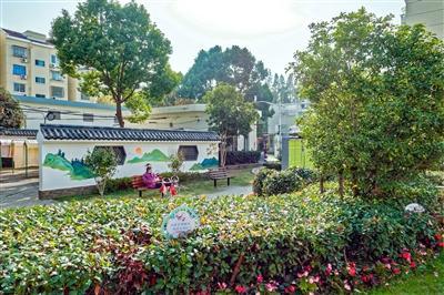 “微更新90%的內(nèi)容,都是居民自己完成的。”為項(xiàng)目提供專業(yè)藝術(shù)支持的王翔威介紹,設(shè)計(jì)師經(jīng)與居民討論確定喜愛的江南風(fēng)格圖畫,并在墻上用鉛筆打稿,隨后由“香楠路家園守護(hù)隊(duì)”及其他居民耗時(shí)2周時(shí)間,完成全部墻繪上色。此外,居民文藝骨干還發(fā)揮主觀能動(dòng)性,在廣場(chǎng)正中一座小亭子的立柱上,添上內(nèi)容為“露潤(rùn)香園浮瑞色 霜含雅韻掛繁英”的對(duì)聯(lián),使環(huán)境再添幾分“文氣”。長(zhǎng)廊、粉墻、拱門,墻上的“小橋流水”,外加紅杏樹、柳樹、風(fēng)信子等景致,讓人仿佛“誤入”一座簡(jiǎn)約版的江南園林。