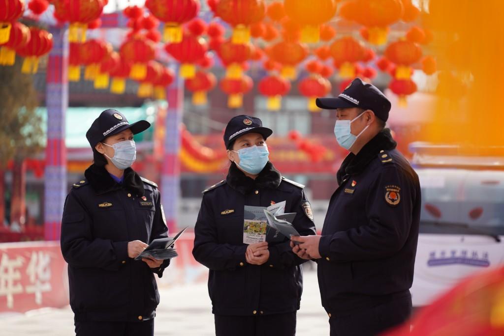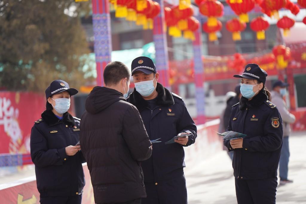 圖為節(jié)日期間堅(jiān)守一線的城管隊(duì)員