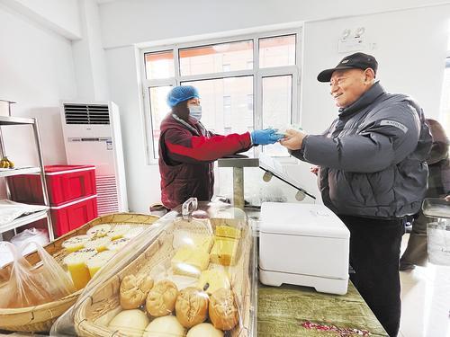 2月22日,在路北區(qū)文登苑社區(qū)幸福家園養(yǎng)老服務中心食堂,居民正在買飯。記者 王育民 攝