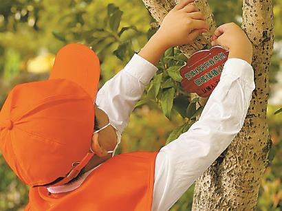 云臺二居民區(qū)是個(gè)純住房老小區(qū),綠化面積大,有不少居民在樹木間隨意拉線晾曬,嚴(yán)重影響小區(qū)面貌和綠植正常生長。小朋友們注意到這一現(xiàn)象后,召開紅領(lǐng)巾議事會(huì)出謀劃策,提出了勸阻、增加晾曬區(qū)、制作插牌做提醒、綠植掛牌認(rèn)養(yǎng)等措施,得到了居民區(qū)黨總支、物業(yè)和業(yè)委會(huì)的支持,大家分頭行動(dòng),增加集中晾曬區(qū),還著手安排制作插牌和綠植認(rèn)養(yǎng)牌。孩子們也紛紛認(rèn)領(lǐng)綠植樹木,在認(rèn)領(lǐng)牌正面注明姓名和認(rèn)養(yǎng)信息,背面標(biāo)注植物名稱、科目類別和種植日期。這樣,每一棵綠植都有了獨(dú)一無二的身份信息,每個(gè)孩子也有了自己專屬的“責(zé)任樹”。一到課余時(shí)間,小朋友們就來觀察樹木長勢和有無病蟲災(zāi)害,還會(huì)播種花籽,有禮貌地勸阻不文明行為。