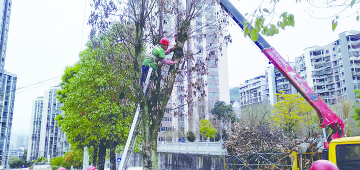 原來(lái),位于枇杷坪青龍西路的水韻天成小區(qū)一直有個(gè)隱患,就是小區(qū)公路兩旁的部分行道樹(shù)枯萎傾斜,刮風(fēng)下雨時(shí)有倒伏傷人、砸壞車輛的風(fēng)險(xiǎn),居民為此憂心,于是向區(qū)城市管理局進(jìn)行反映。