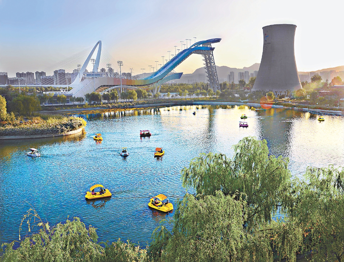 首鋼園里,市民泛舟群名湖,感受新首鋼的風(fēng)采與活力。楊國(guó)東 攝