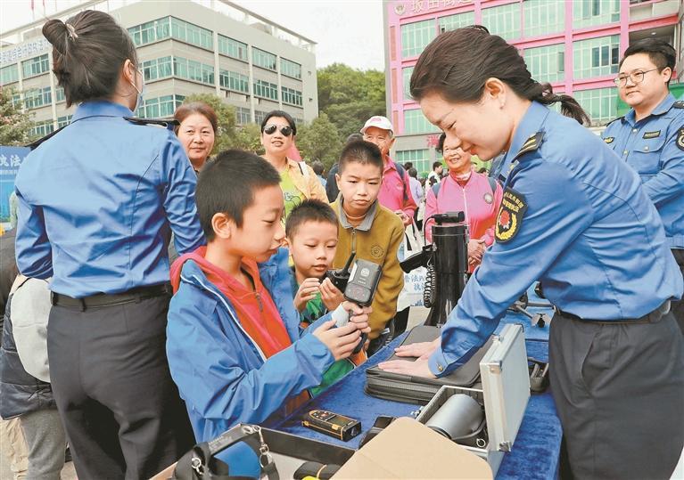 深圳街道綜合行政執(zhí)法開放日吸引眾多市民前來參與,現(xiàn)場執(zhí)法人員為市民耐心講解城市管理問題。深圳特區(qū)報記者李忠 攝