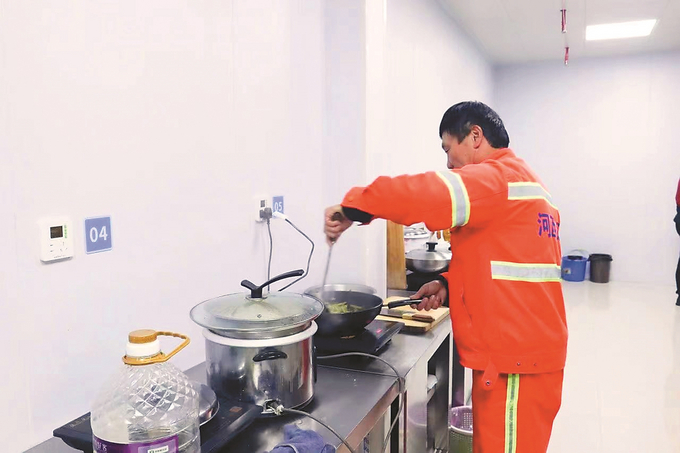 首先是解決環(huán)衛(wèi)工人吃飯的問題。河西建環(huán)征求意見時(shí),超八成環(huán)衛(wèi)工人提出希望能自己燒飯。2023年10月,企業(yè)先后投入二十幾萬,在原來規(guī)劃小賣店的位置對水、電、地下管線等進(jìn)行全面改造,建設(shè)公共廚房,并為“每家每戶”劃定使用區(qū)域。