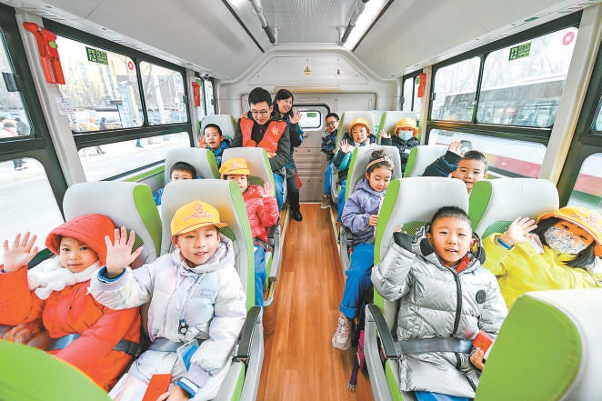 通學(xué)195路是石景山區(qū)首批開通的通學(xué)線路之一。臨近發(fā)車,“小豆包”在家長(zhǎng)陪伴下陸續(xù)抵達(dá)?!敖裉熘酪▽W(xué)公交,非常興奮,一大早就爬起來(lái),自己穿衣服、刷牙。孩子覺(jué)得自己能獨(dú)立坐公交車,像個(gè)小大人了?!奔议L(zhǎng)史姍姍說(shuō),她家就住對(duì)面小區(qū),通學(xué)車方便又安全,價(jià)格也實(shí)惠。