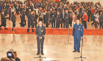 3月5日,十四屆全國人大二次會議首場“代表通道”采訪活動舉行,代表在接受采訪。本報記者 蔣雨師 攝
