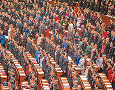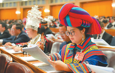 3月5日,十四屆全國人大二次會議在北京人民大會堂開幕,代表認(rèn)真審議政府工作報告。本報記者 陳斌 攝
