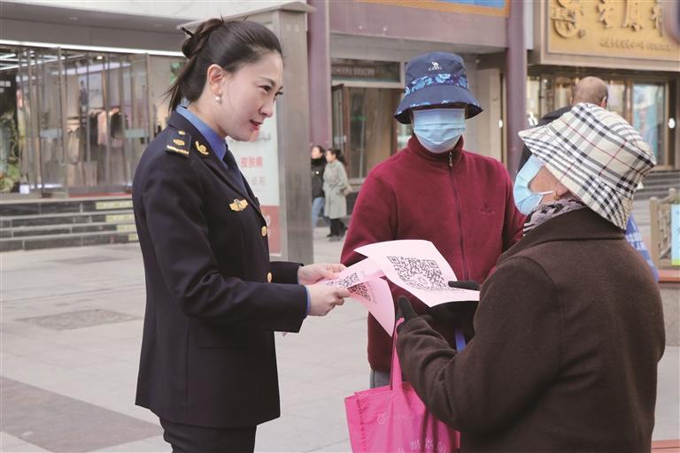 市城管委數(shù)字中心負責(zé)人向市民宣傳微信“隨手拍”