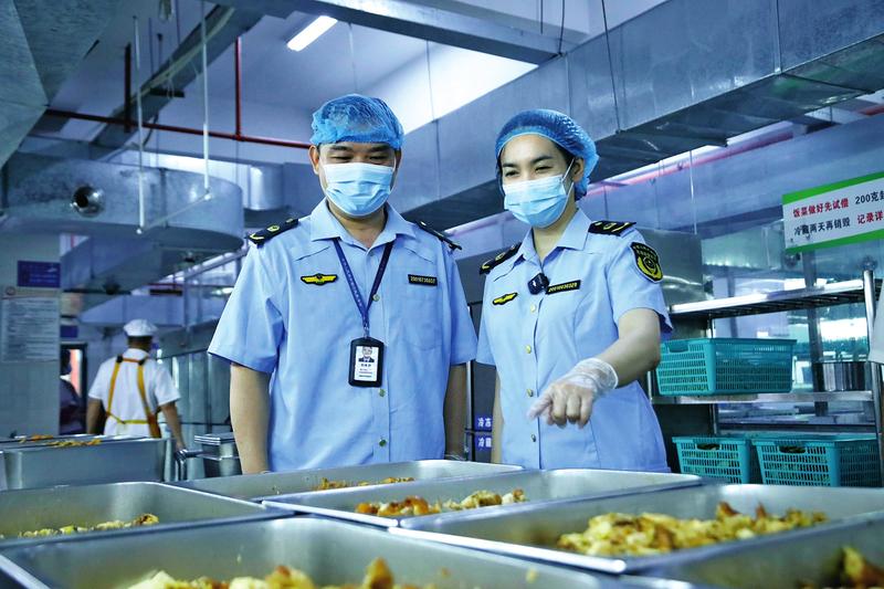 南寧市市場(chǎng)監(jiān)管局經(jīng)開分局對(duì)轄區(qū)考點(diǎn)學(xué)校食堂和校園周邊食品經(jīng)營(yíng)單位開展食品安全專項(xiàng)監(jiān)督排查,加強(qiáng)食品安全監(jiān)管,保障中考考生飲食安全。檢查中,執(zhí)法人員重點(diǎn)查看學(xué)校食堂的食品貯存?zhèn)}庫、食品處理區(qū)、備餐間、餐具清洗消毒區(qū)和食堂從業(yè)人員健康體檢等情況,督促學(xué)校嚴(yán)格落實(shí)食品安全主體責(zé)任,確保食材原料采購的質(zhì)量和營(yíng)養(yǎng)健康,落實(shí)進(jìn)貨查驗(yàn)和索證索票制度。同時(shí),執(zhí)法人員對(duì)校園周邊的食雜店、餐飲店等進(jìn)行了檢查,為考生營(yíng)造安全放心的餐飲消費(fèi)環(huán)境。中考期間,經(jīng)開分局執(zhí)法人員還進(jìn)駐考點(diǎn)學(xué)校食堂進(jìn)行全程監(jiān)督,全力保障中考供餐安全。