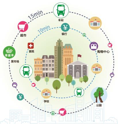 想象一下,一天的生活這樣規(guī)劃是否很幸福——早上出門,在家附近的早餐店吃頓熱乎乎的餛飩,再步行15分鐘去上學(xué)或上班。居住的小區(qū)周圍,菜市場、健身房、口袋公園、超市、醫(yī)院等生活配套設(shè)施一應(yīng)俱全。