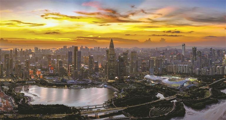 7月7日傍晚,深圳灣畔上演視覺大片。當(dāng)天空被絢爛的晚霞染紅,正遇上城市華燈初上,霞光燈光交相輝映,美不勝收。記者 周紅聲 攝