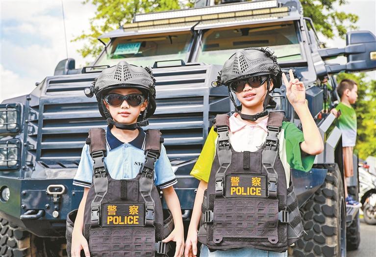 本次開放日活動(dòng)分設(shè)南北兩個(gè)廣場(chǎng),主要包括群眾安全感滿意度工作展、警隊(duì)典型人物展、警務(wù)科技展、警務(wù)技能現(xiàn)場(chǎng)表演、政法宣傳等互動(dòng)體驗(yàn)展區(qū),設(shè)置拍照簽到、光警故事、游戲互動(dòng)、舞臺(tái)表演、裝備展示、宣傳品兌換等6大板塊,通過警用裝備展示、警務(wù)實(shí)戰(zhàn)演練、體驗(yàn)互動(dòng)、留影打卡等諸多活動(dòng)形式,讓市民親身體驗(yàn)了解公安工作,掌握各類安全防范知識(shí)和技能。