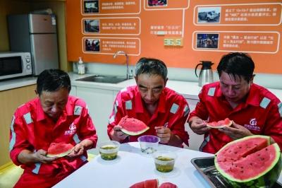 “來,今天吃哈密瓜。”在位于棲霞區(qū)的南京博潤環(huán)境公司仙林項目部安康驛站內,負責人汪洋切了滿滿一大盆哈密瓜張羅著在此歇腳的環(huán)衛(wèi)工人。記者在現(xiàn)場看到,這一新近打造的安康驛站內,空調、冰箱、微波爐等配套齊全,一邊的桌子上不僅擺放著清涼油、藿香正氣水、風油精、人丹等防暑降溫用品,還配備著礦泉水、鹽汽水等飲品,“不僅備齊該有的物品,這里的服務時間還延長至晚上9時后。”汪洋介紹。