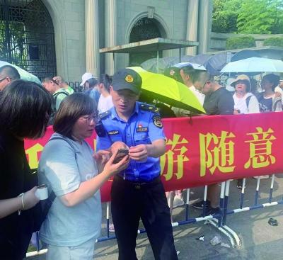 上午10時后,“總統(tǒng)府”景區(qū)前等待進場的游客逐漸減少,李洋也將巡查保障的陣地由景區(qū)外轉至景區(qū)內。和來自公安、文化執(zhí)法等部門的同志一起對景區(qū)內的“黃?!薄o資質導游等進行規(guī)勸執(zhí)法等,“我們既是這座城市的管理員,也是這座城市的宣傳員,更是景點的引導員,讓更多人愛上有序的南京,熱一點、辛苦一點算不上啥?!崩钛笳f。