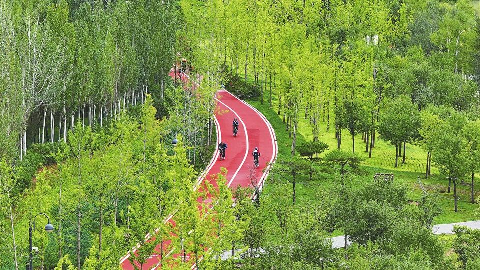 近日,雨后的太原汾河景區(qū)草木青翠,空氣清新。濱河自行車專用道上,市民們盡情騎行。這里不僅是生態(tài)福地,更是市民們放松身心、擁抱自然的好去處。記者 李兆民 攝