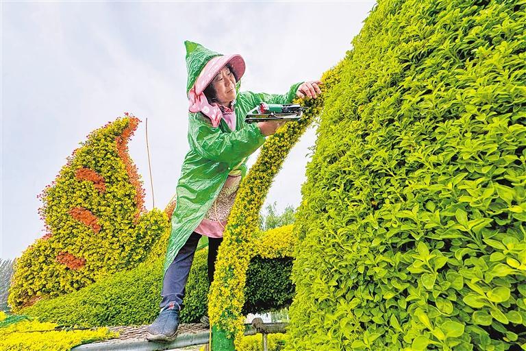 9月9日,銀川市綠化養(yǎng)護(hù)中心花卉基地,工作人員制作一座座造型獨(dú)特的綠雕。中秋、國慶“雙節(jié)”將至,銀川市園林部門將在城市主要干道、廣場(chǎng)公園展擺120萬盆鮮花,這一抹抹亮色將為城市帶來無限活力和濃郁的節(jié)日氛圍。 記者 馬楠 王洋 攝