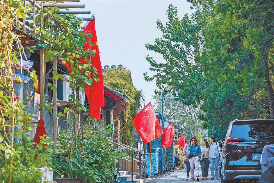 9月24日,記者在西城區(qū)西交民巷社區(qū)東中胡同看到,家家戶戶已經(jīng)掛起五星紅旗,迎接國慶佳節(jié)到來。實習(xí)記者 金瑤 攝