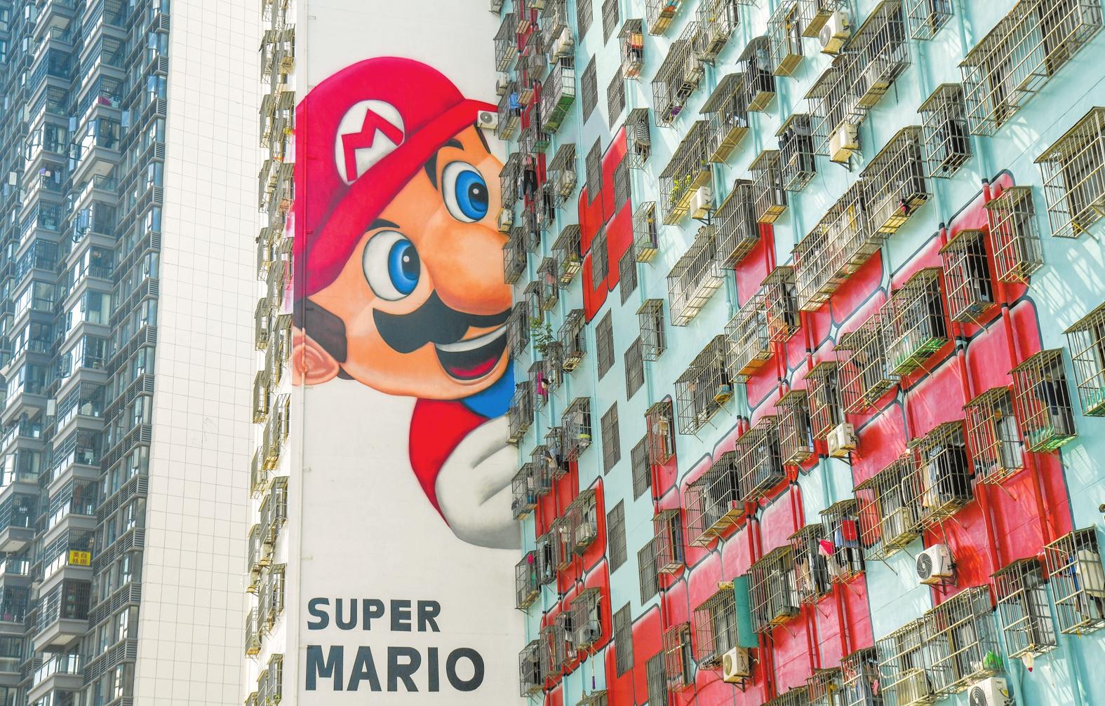 坡博路一棟住宅樓的墻面上,“馬里奧”的身姿躍入眼簾,惟妙惟肖。 記者 康登淋 攝