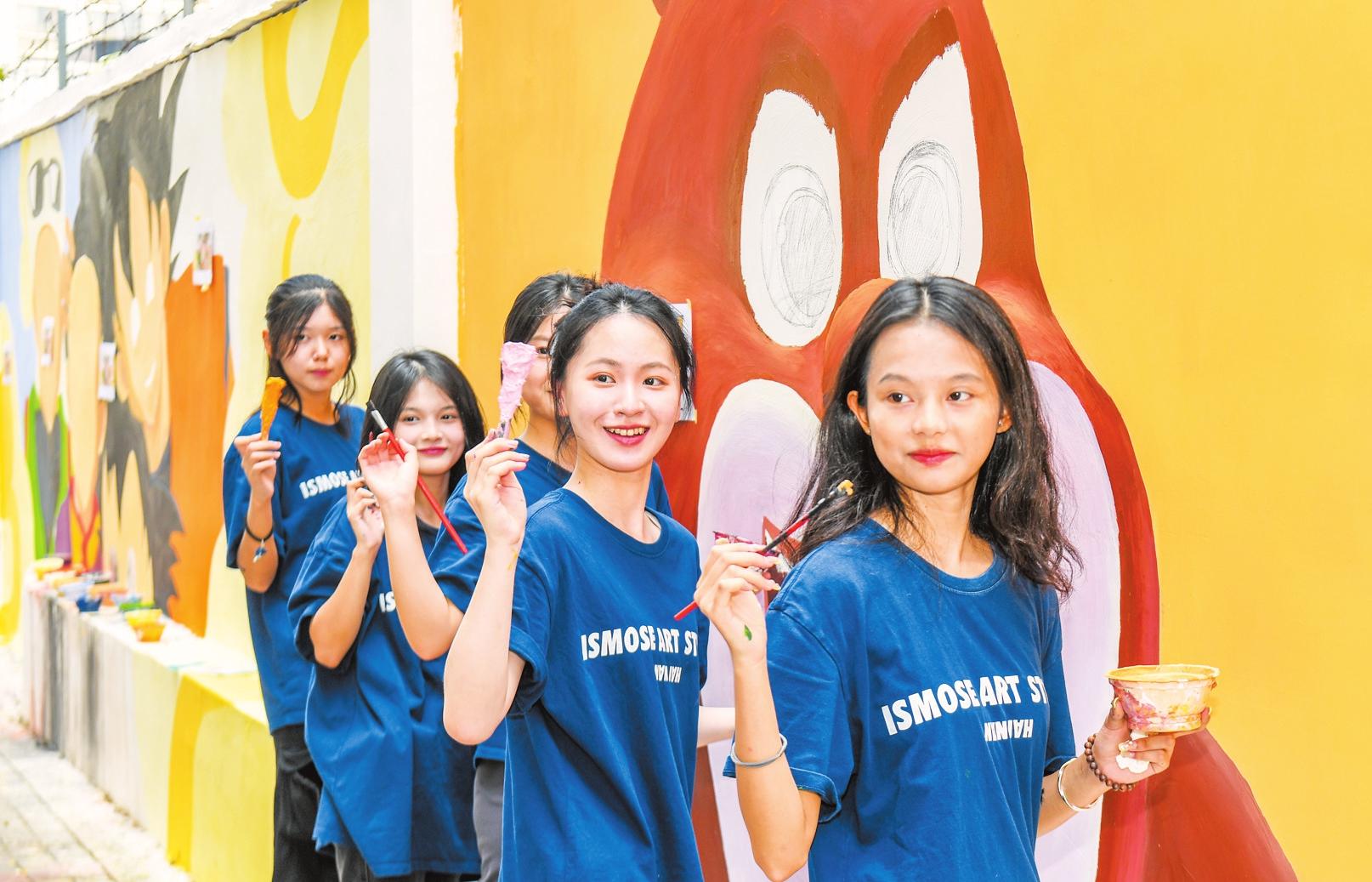 “作為一名海南人,能夠用畫筆為家鄉(xiāng)服務(wù),我覺得十分自豪。”鄭思雅是參與此次彩繪的藝術(shù)愛好者之一,她表示,新潮有趣的墻繪能夠吸引更多人來打卡,在每一幅墻畫前感受不一樣的文化。