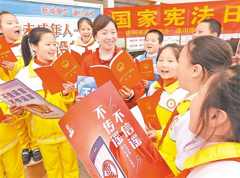 12月3日,在四川省達(dá)州市通川區(qū)羅江鎮(zhèn)魏興實驗學(xué)校,普法志愿者給學(xué)生講解憲法知識。今年12月4日是第十一個國家憲法日,各地開展形式多樣的活動普及憲法知識,宣傳法治觀念。2024年“憲法宣傳周”活動主題為“大力弘揚(yáng)憲法精神,推動進(jìn)一步全面深化改革”,時間為12月1日至7日。新華社發(fā)