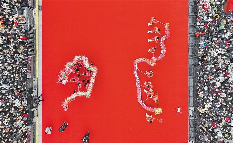 2月2日,江蘇省南通市崇川區(qū)南大街,“金蛇獻(xiàn)瑞樂(lè)通城”南通新春民俗巡游精彩上演。民俗巡游活動(dòng)采取歌、舞、樂(lè)的表演形式,由10個(gè)南通民俗方陣和2個(gè)特邀方陣組成,以大眾喜聞樂(lè)見的方式,讓市民游客盡享民俗文化盛宴。許叢軍 攝(中經(jīng)視覺)