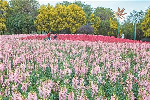 2月15日,柳州市園博園6萬多株金魚草花開正艷,構(gòu)成一幅絢麗的春日畫卷,吸引市民、游客前來踏春賞花。吳廣升/攝