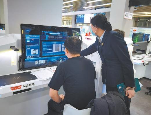 政務專員正在幫助辦事人辦理業(yè)務。副中心政務服務大廳供圖