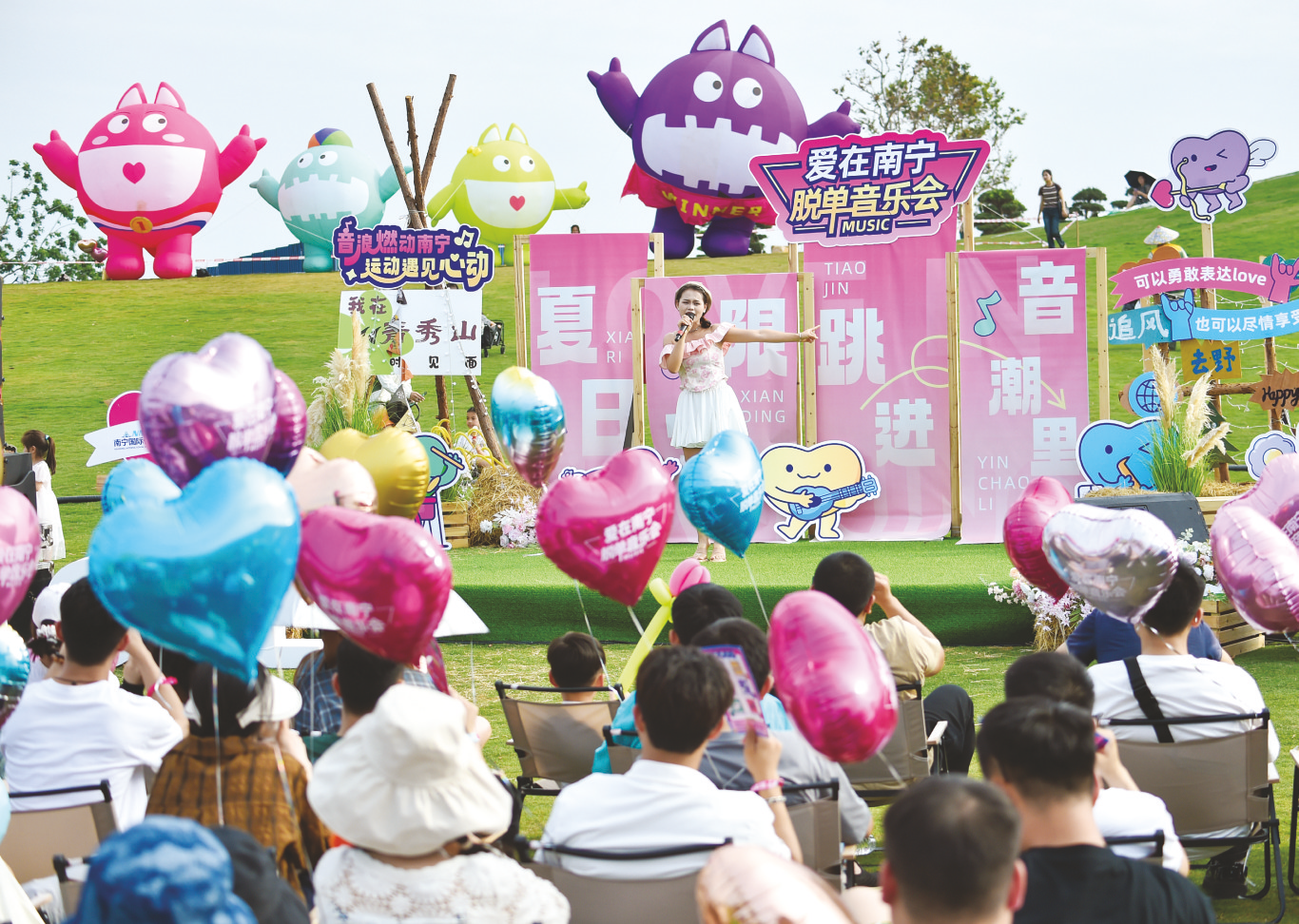 青年男女在青秀山風(fēng)景區(qū)參加脫單音樂會(huì)。記者 潘浩 攝
