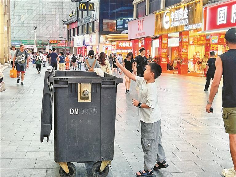 如此龐大的客流量,卻沒有讓街區(qū)變得雜亂無章,街道依舊干凈整潔。這離不開環(huán)衛(wèi)工人的辛勤付出,王阿姨便是其中的代表。假期五天,她持續(xù)作業(yè),不僅要處理日益增多的垃圾和紙箱等廢棄物,還被調(diào)派至人流密集區(qū)域加強(qiáng)保潔力度。“最忙的時(shí)候是下午4點(diǎn)到6點(diǎn),我們得保證垃圾不落地?!蓖醢⒁踢吳謇韽U棄飲料瓶邊告訴記者。