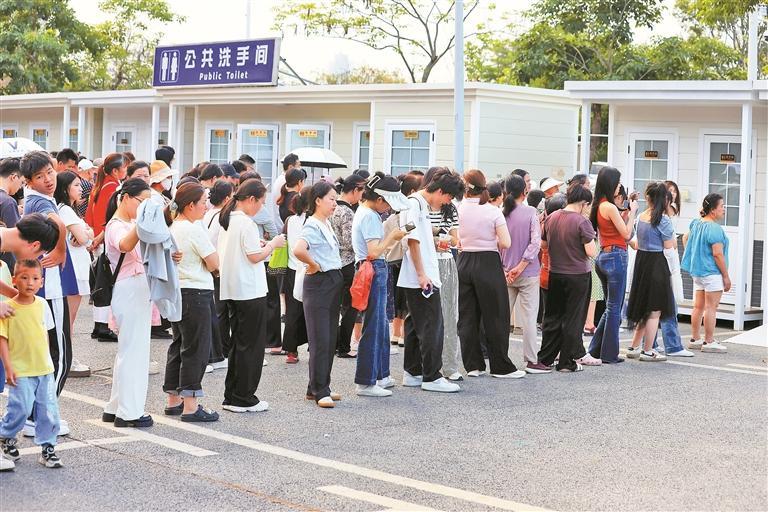 深圳灣公園內(nèi),游客在公共廁所前有序排隊(duì)等候。記者 陳玉 攝