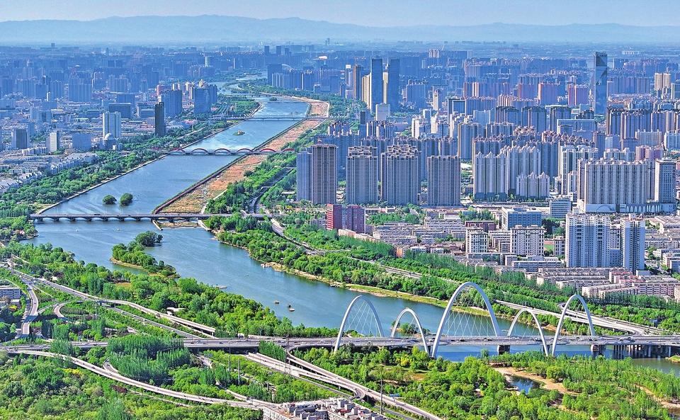 5月9日,太原市汾河公園,造型獨特的橋梁與波光粼粼的汾河相互映襯,一幅優(yōu)美的城市生態(tài)畫卷徐徐展開。記者 劉通 攝