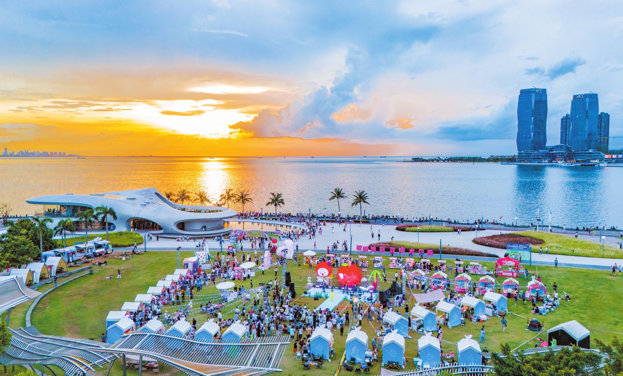 文化浸潤(rùn),以精神豐盈塑造城市品格。華燈初上,世紀(jì)海角文化商業(yè)街區(qū)的霓虹與晚霞交相輝映。手工藝人展示黎錦編織技藝,街頭樂隊(duì)奏響海南民歌,游客舉著“老爸茶”奶茶打卡拍照——這條2023年開業(yè)的特色街區(qū),已成為??谝菇?jīng)濟(jì)的“流量擔(dān)當(dāng)”。