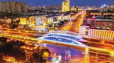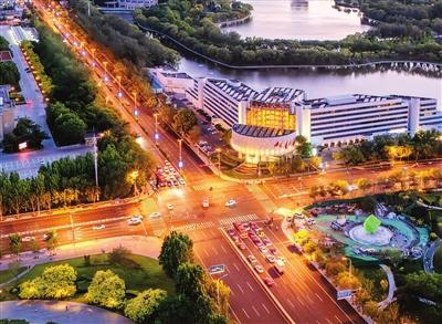 夜幕降臨,天津市友誼路沿線燈火璀璨,水晶宮飯店、津誼橋、蓮花酒店等地標(biāo)建筑披上絢麗的光影外衣。