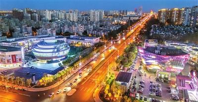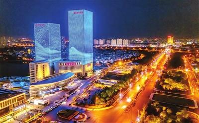 友誼南路夜色中的津典時(shí)代廣場(左)和蓮花酒店(右)如同璀璨的明珠