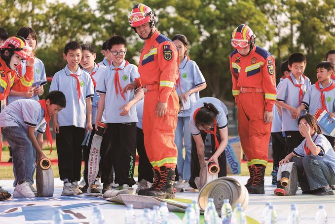近日,鹽城市鹽都區(qū)消防救援大隊(duì)開(kāi)展消防宣傳進(jìn)校園活動(dòng)?;顒?dòng)現(xiàn)場(chǎng)內(nèi)容豐富、形式多樣,為北龍港小學(xué)廣大師生和家長(zhǎng)帶來(lái)了一場(chǎng)別開(kāi)生面且具有教育意義的消防安全知識(shí)盛宴。 王小康 攝