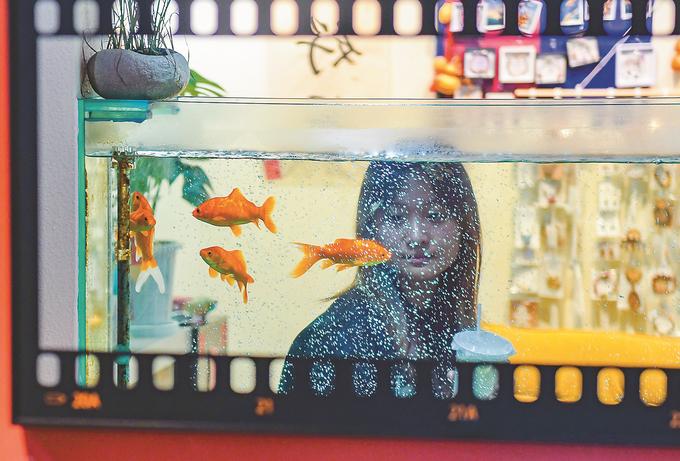 6月10日,南京江北新區(qū)“鯉coffee”,一位顧客邊喝咖啡邊賞魚。別出心裁的“魚咖”搭配,吸引不少人到此打卡。小店老板希望營造一種讓生活“漫游”起來的可能。記者 丁玄玄 攝