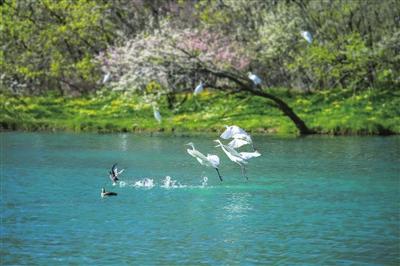 水質(zhì)澄澈,是河流的靈魂。曾幾何時(shí),汾河蒙塵。而今,清流滌蕩污濁,終于喚醒了沉睡的見證者——被譽(yù)為“活體水質(zhì)檢測(cè)器”的桃花水母,在四期水域輕盈旋舞,近乎透明的傘蓋如精靈般浮動(dòng)。清波之下,是萬物生長(zhǎng)的秘境;碧水之上,是羽翼的樂園。天鵝、白鷺、蒼鷺、斑嘴鴨……上百種鳥兒于此棲息,它們翅膀的每一次扇動(dòng),都是對(duì)汾河生態(tài)最真實(shí)的肯定。騎行者在綠道上飛馳,身影融入兩岸的錦繡;游人漫步木棧道,步伐隱沒在流動(dòng)的詩(shī)意里;沿岸居民推窗見綠,汾河終于找回了它清亮的歌喉。