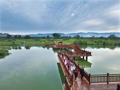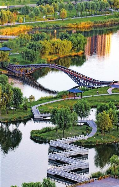 風(fēng)光旖旎,是河流的容顏。順流而下,汾河四期如一幅水墨長(zhǎng)卷在城北徐徐鋪展。雁丘園內(nèi),當(dāng)年元好問筆下“問世間、情是何物”的慨嘆,如今沉淀為濕地間婉轉(zhuǎn)的鳥鳴與蘆葦迷宮的低語。流水潺潺,棧道曲折,每一處彎折都藏著靜謐的驚喜。再往前行,豁然開朗處,“小三亞”的金色沙灘在陽(yáng)光下閃耀,孩子們追逐嬉戲,帳篷如花朵點(diǎn)綴在碧水金沙之畔,城市人心中向往的“遠(yuǎn)方”觸手可及。