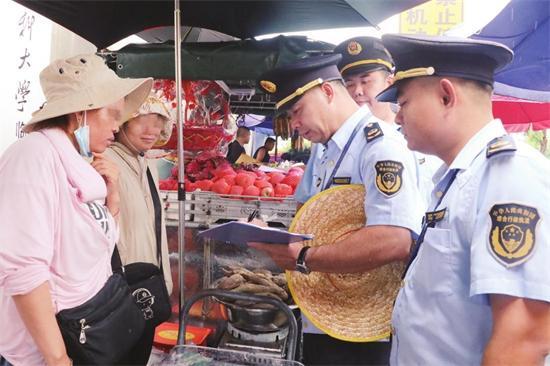 執(zhí)法人員向攤主普法說理。