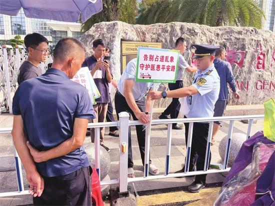 為防止問題反彈,秀英分局打出“組合拳”,協(xié)調院方增設物理隔離欄,優(yōu)化人車分流通道,并安排人員定人定崗值守,整治工作取得明顯成效。