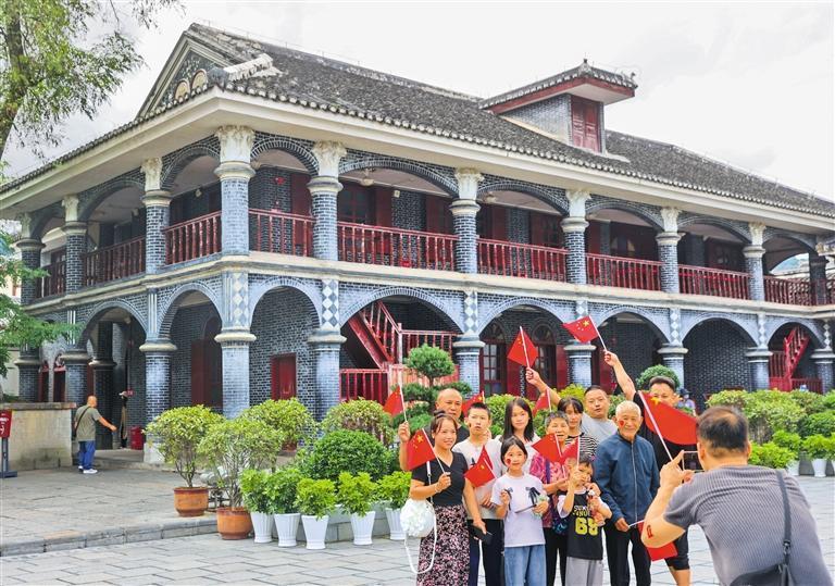 10月8日,貴州省遵義市遵義會議會址,游客在合影留念。國慶中秋假期,紅色旅游持續(xù)升溫。袁福洪攝(中經視覺)