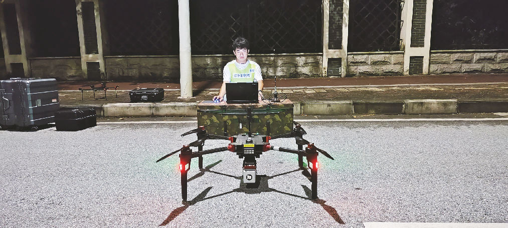 南寧市自然資源信息集團有限公司工作人員在夜間開展防汛應急航拍。(何佳玲 攝)
