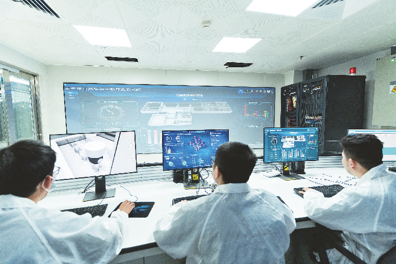 機房作為南寧市地理空間智能體的基礎設施,是保障智能體穩(wěn)定運行的基礎。圖為技術人員在監(jiān)控機房運行情況。(何佳玲 攝)