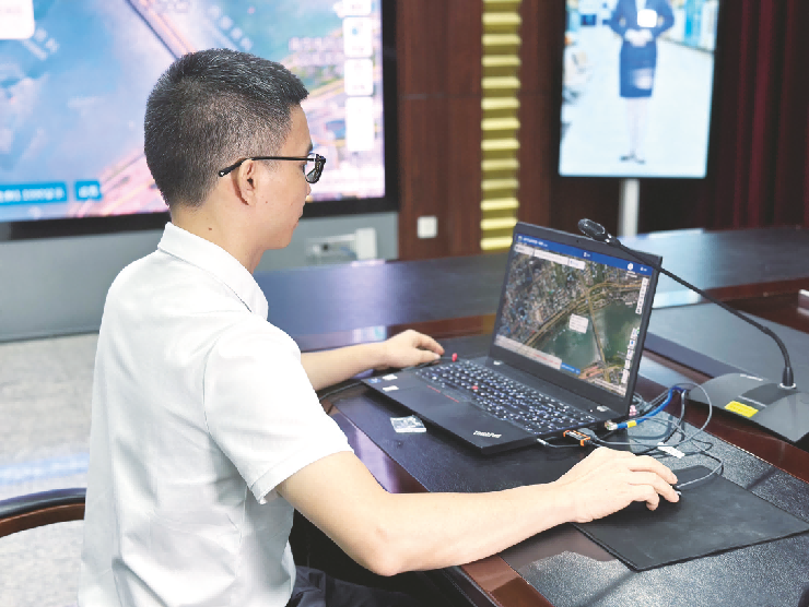 南寧市自然資源信息集團有限公司技術人員演示“清淤一張圖”,清淤情況實時可視化。記者 韋靜 攝